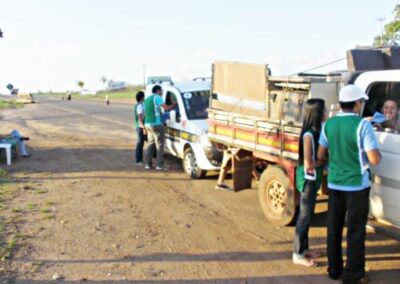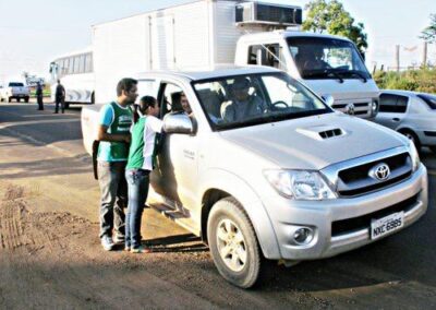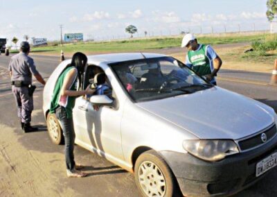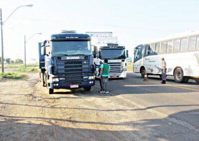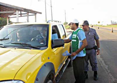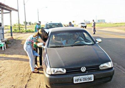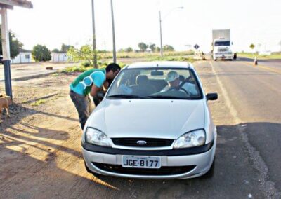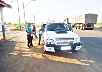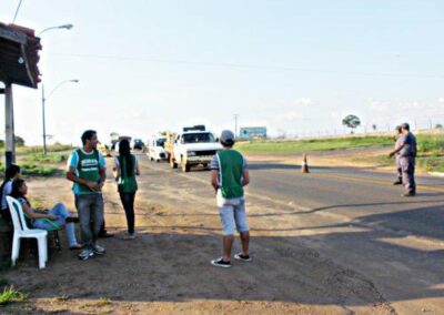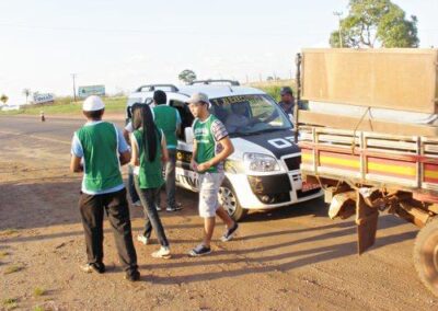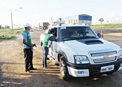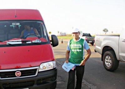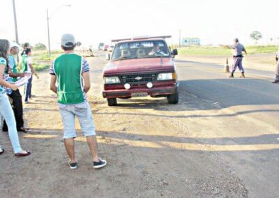 Realizamos ações em postos de combustível espalhados ao longo das estradas, priorizando aquelas com maior movimentação de caminhões. Além disso, expusemos em pontos estratégicos banners sobre a Campanha de Prevenção e Combate Contra Queimadas.