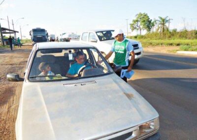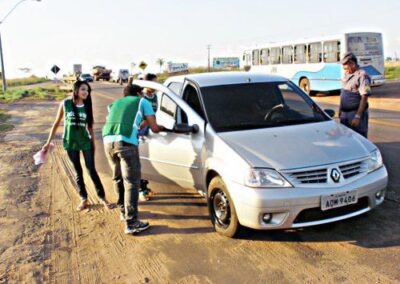 Atuamos com várias equipes, dessa forma, visamos minimizar as queimadas na região pré-amazônica, onde buscamos combater as causas, para tanto, realizamos ações educativas focando motoristas e passageiros que transitavam nas BRs. Esses condutores e conduzidos, dentro das estatísticas, aparecem como o principal grupo provocador de queimadas, a partir de margens de estradas e rodovias