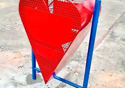 Com o intuito de longa durabilidade, as Lixeiras foram produzidas de estrutura reforçada de ferro, aço inox, chapa, zinco e parafusos, com a forma de um coração onde é armazenado o lixo. O tamanho é considerado grande para uma lixeira, chegando a quase um metro de altura, setenta centímetros de comprimento por meio metro de largura e uma capacidade de armazenamento aproximada de 100 litros.